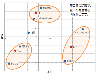 例②:コレスポンデンス分析により、ポジションを“見える化”